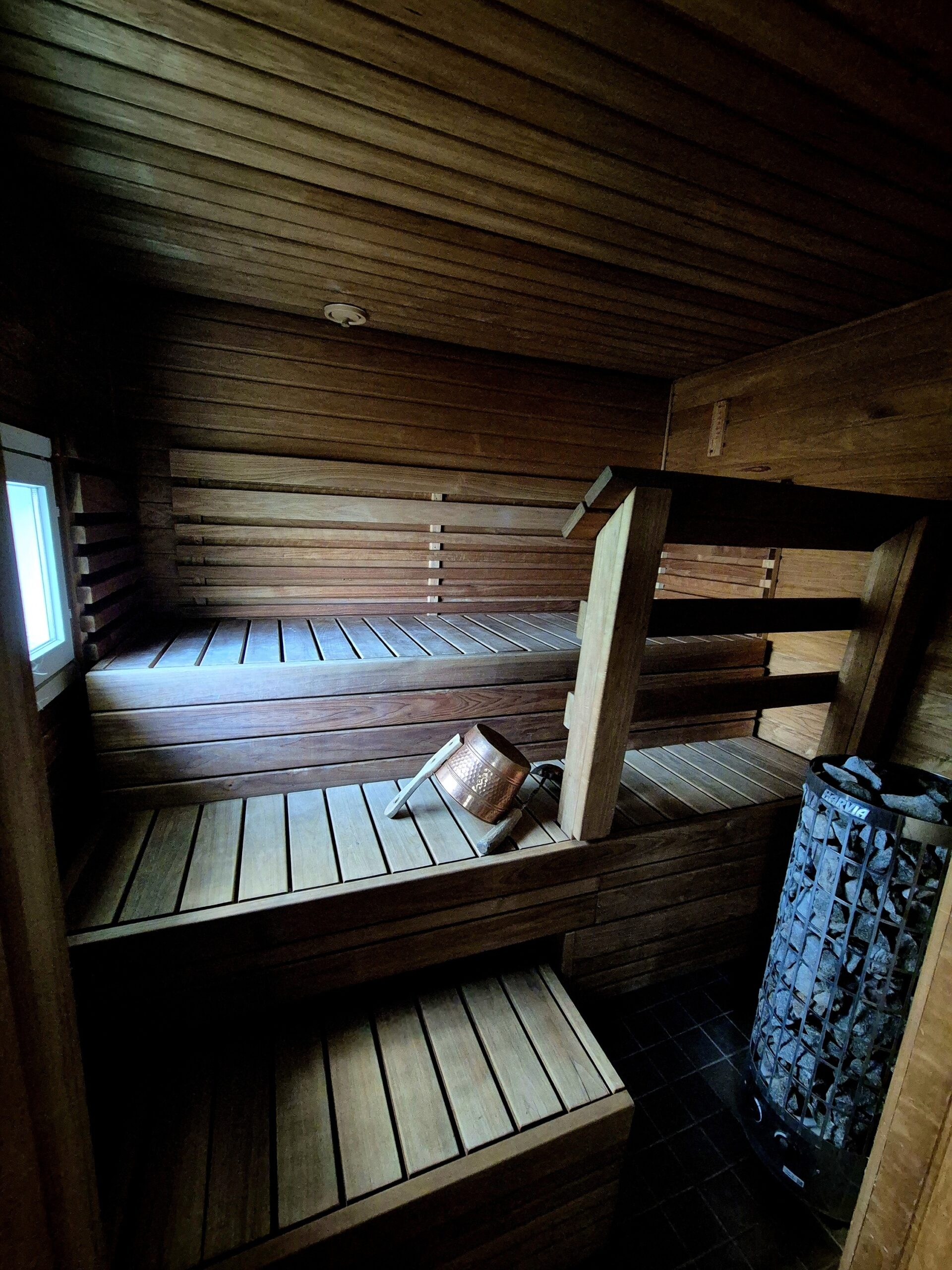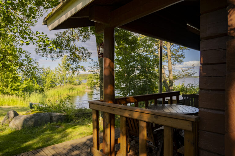 Sauna A is a unique sauna with accommodation possibilities. It is located just about 10 meters away from the shoreline, sheltered under the branches of trees. From the sauna’s terrace, a magnificent view towards the sea opens up. Beach Sauna A is well-suited for couples, for example.